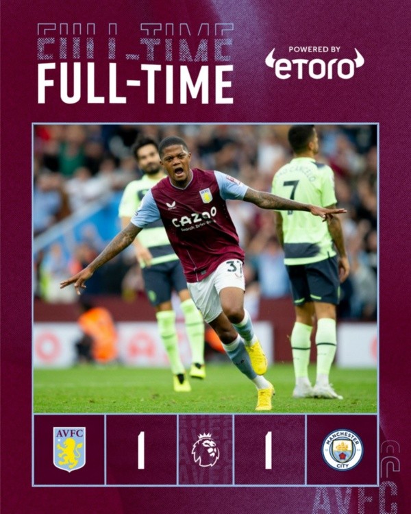 Así es como se consagró el empate 1-1 final, Manchester City se queda con 14 unidades en el segundo puesto, a uno del líder absoluto, Arsenal, que tiene un partido menos. La siguiente jornada tendremos a los ‘citizens’ de locales enfrentando al Tottenham del italiano, Antonio Conte. Mientras que, Aston Villa deberá visitar al Leicester City, los dos partidos se jugarán el sábado 10 de septiembre.