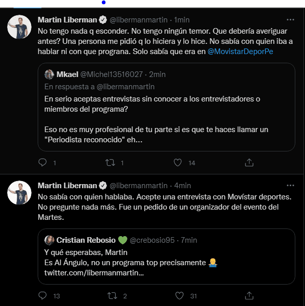 Automáticamente, los hinchas peruanos del periodista Martín Liberman lo buscaron y le trasladaron el mensaje del exfutbolista. A lo que la respuesta fue muy fuerte por parte del ex conductor de ‘Debate Final’ en el desaparecido ‘Fox Sports Argentina’. Ojo a lo puesto por el amigo de Cristiano Ronaldo.