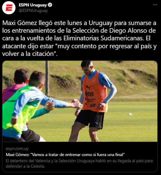 Las diversas informaciones no lo dan como titular, pero es un jugador con jerarquía de nivel europeo. Cuando no estuvieron los grandes goleadores como Luis Suárez y Edinson Cavani, tomó ese puesto con seriedad, por eso ahora es considerado. Maximiliano Gómez esta vez deberá esperar un poco.