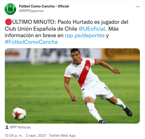 Hoy por hoy, la noticia se conocdió: “Paolo Hurtado es jugador del Club Unión Española de Chile”, señalaron en Fútbol como Cancha. “Acuerdo es hasta diciembre de 2022”, complementaron. Así, se espera que el Caballito comience a romperla ¡Te queremos de vuelta!