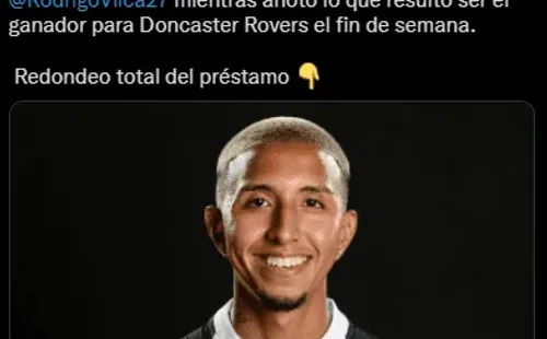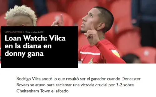 “Un primer gol senior en el fútbol inglés para Rodrigo Vilca, mientras anotó lo que resultó ser el ganador para Doncaster Rovers el fin de semana. Partido redondo del préstamo”. Adjuntando una fotografía de presentación en la actual temporada del joven volante creativo.