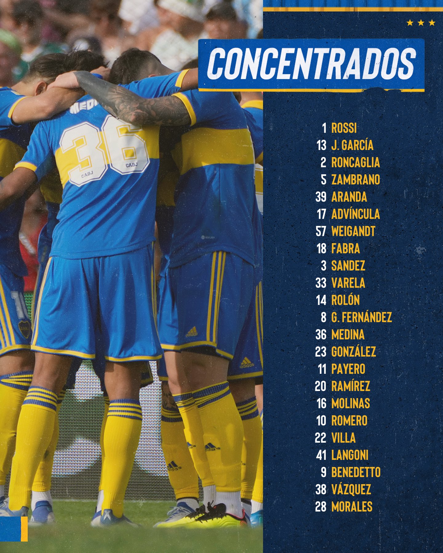 XI BOCA JUNIORS: Rossi, Advíncula, Aranda, Roncaglia, Fabra, Medina, Payero, Varela, Romero, Langoni y Benedetto.