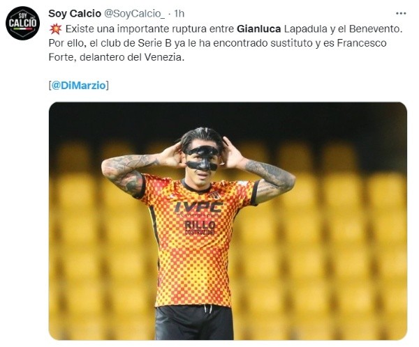 Tras la posible salida deGianluca Lapadula,Benevento ya tendría un reemplazo en el caso que el peruano se mude de club. El delantero del Venezia FC, Francesco Forte, sería la nueva carta de gol para los amarillos y rojo. El italiano de 28 años mide 1.83 cm, es zurdo y viene de la Serie A, por lo que sería un gran aporte para los dirigidos por Fabio Caserta, toda esta información la habría dado el periodista Gianluca Di Marzio.