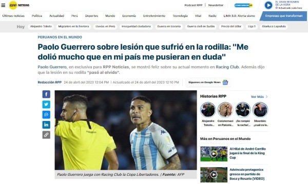 Paolo Guerrero dejó de ser la palabra santa en el Perú, después de sus últimos pasajes deportivos, donde no jugaba tan bien, y posiblemente, perdió piso en el corazón de sus hinchas. Los cuales ahora lo miran nuevamente con respeto por su trabajo en Racing Club.