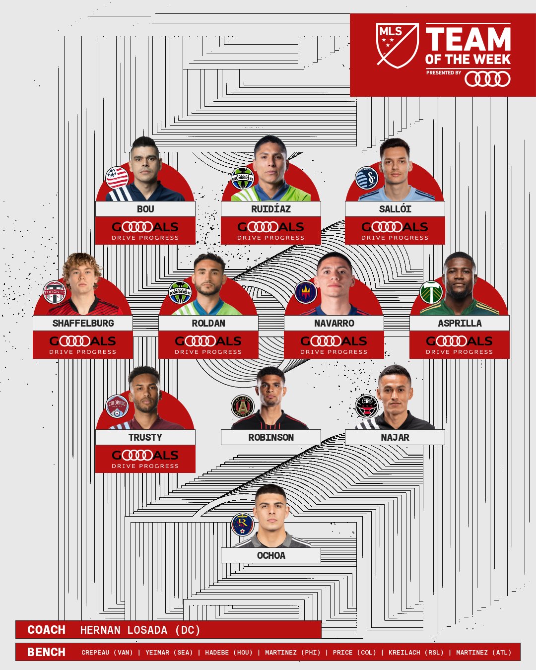 En la fecha 27 de la MLS el delantero peruano se encontraría en el equipo ideal junto a todos estos futbolistas: David Ochoa (RSL); — Auston Trusty (COL), Miles Robinson (ATL), Andy Najar (DC) —Jacob Shaffelburg (TOR), Cristian Roldan (SEA), Federico Navarro (CHI), Dairon Asprilla (POR) — Gustavo Bou (NE), Raul Ruidíaz (SEA), Daniel Salloi (SKC).
