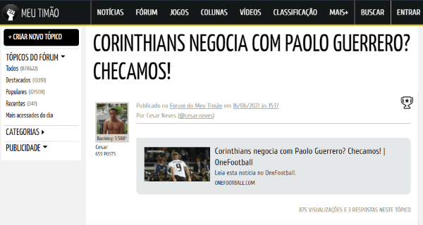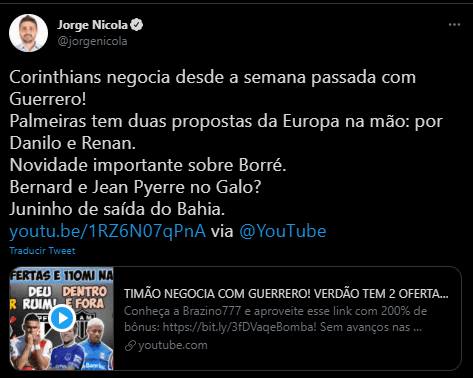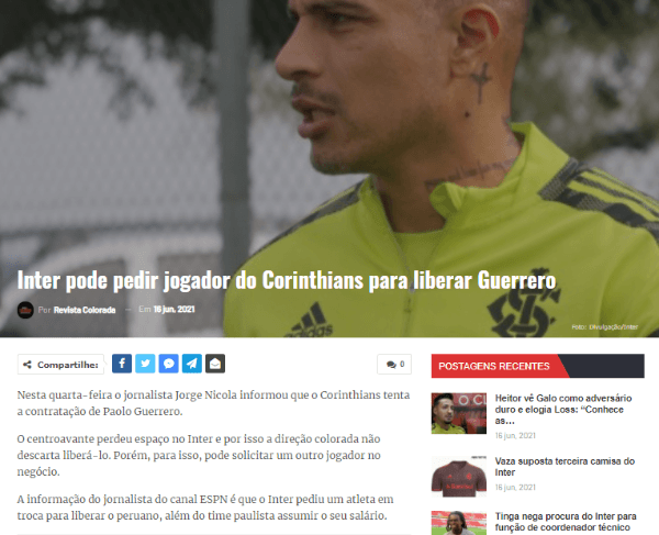 Después ‘O Bairrista’ desarrolla aún más la información: “Al parecer, Paolo Guerrero busca un cambio de aires, una razón similar a la rescisión contractual solicitada por el entrenador del jugador en el pasado. Hasta el momento, no se han iniciado conversaciones para renovar el contrato del delantero, que está libre a partir de enero de 2022”.