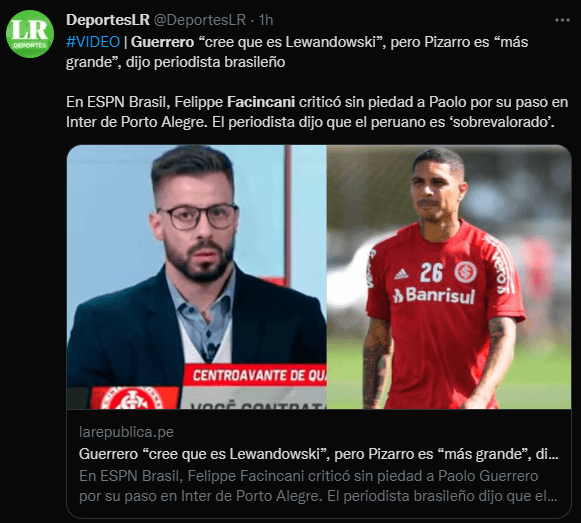 Un periodista de renombre hizo un resumen bastante sangriento sobre la carrera de Paolo Guerrero en el fútbol brasileño. Felippe Facincani, comentarista de ESPN, se pasó minutos largos para explicar el nivel de nuestro capitán en una emisión en vivo. Donde criticó sus registros de goles, su comportamiento, y la trascendencia que tuvo en su país.