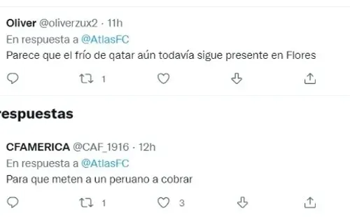 “Parece que el frio de Qatar todavía sigue presente en Flores”, “Para qué meten a un peruano a cobrar”. Estos fueron algunos comentarios de los fanáticos de Atlas tras la ejecución errada del exvolante delDC United.