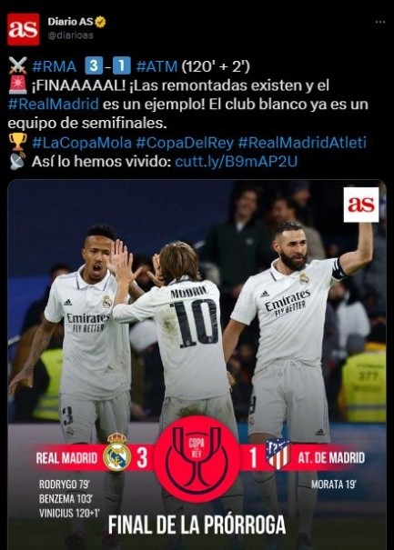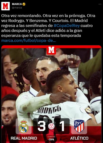 Así es como ganó el Real Madrid y ahora deberá esperar por el sorteo de las semifinales. Acá te dejamos cómo reaccionó la prensa internacional, sobre este resultado. Que posiblemente deje algunos temas pendientes, como la posible salida del director técnico del Atlético de Madrid, Diego Pablo Simeone, tras un nuevo fracaso.