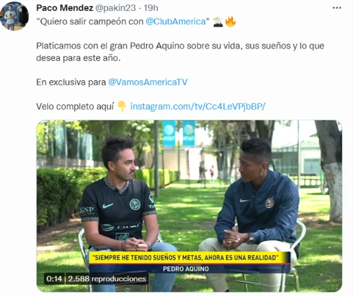 Pedro Aquino, mediocampista de la Selección Peruana, quemilita en el América,dio detalles del día en el que el club mexicano decidió contactarlo para negociar su traspaso. Además, el volante nacionalno dudo en revelar que en ese momentonunca pensó llegar al cuadro azteca y también habló de los objetivos que tiene planeado con las ‘Águilas’.
