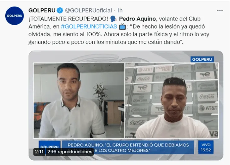 Pedro Aquino, jugador del América de la Liga MX,aseguró que ya dejó atrás la lesión que lo alejó mucho tiempo de las canchas y que ahora se encuentra enfocado en retomar el ritmo de competencia para llegar bien a los playoffs de la liga mexicana y al repechaje mundialista. Cabe resaltar que el seleccionado nacional se perdió a recta final de las Eliminatorias debido a su lesión en el quinto metatarsiano del piederecho.