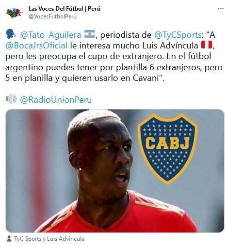 “A Boca le interesa mucho Luis Advíncula, pero les preocupa el cupo de extranjero. En el fútbol argentino puedes tener por plantilla 6 extranjeros, pero 5 en planilla y quieren usarlo en Cavani”, complementó sobre el otro jugador nacional.