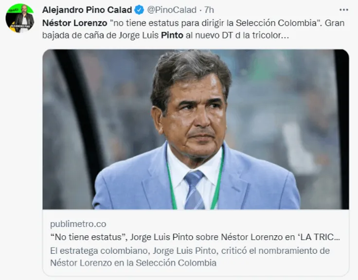 Néstor Lorenzo fue anunciado, hace un par de semanas, como el nuevo entrenador de la Selección Colombia de cara al próximo proceso clasificatorio para el Mundial 2026, el cual seráorganizado por Canadá, México y Estados Unidos. En ese sentido, el técnico colombiano, Jorge Luis Pinto, consideró que el aúntécnico de FBC Melgarno tiene la experiencia suficiente para dirigir a la selección ‘cafetera’.