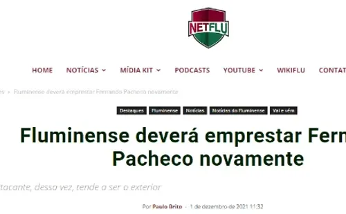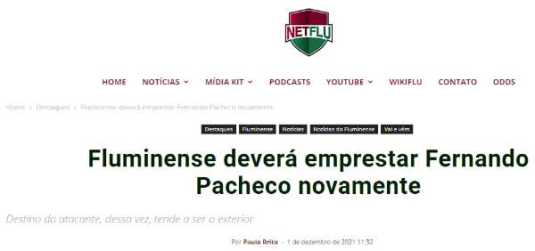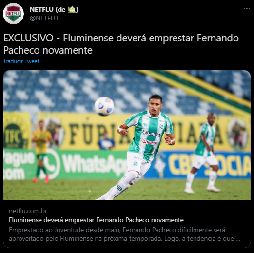 “Pacheco fue fichado definitivamente por el Fluminense el año pasado y firmó un contrato hasta 2023. Sin embargo, no pudo establecerse. En Juventud, tampoco actuó como se esperaba. Figuraba la mayor parte del tiempo en la reserva. De esta manera, se entiende que el delantero peruano de 21 años necesita más experiencia y cancha para actuar con la camiseta tricolor”.