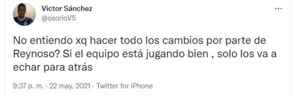 Pese a que Cruz Azul estaba con el marcador favor en el encuentro ante Pachuca que por entonces le daba el pase a la final (algo que terminó ocurriendo), no todos los hinchas del equipo cementero están conformes del todo con el técnico peruano.
