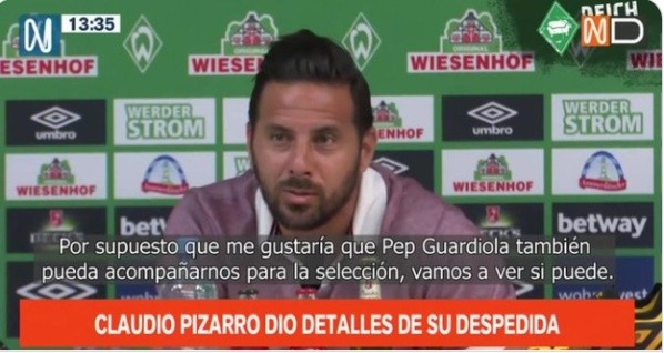 En la conferencia de prensa que realizó Claudio Pizarro para hacer pública su despedida, se le preguntó por la presencia del Pep Guardiola, que lo dirigió en el Bayern Múnich. Comentado precisamente sobre la presencia del estratega español, el delantero fue sincero y mostró su respeto.
