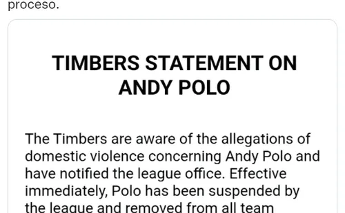 “Los ‘Timbers’ están al tanto de las denuncias de violencia doméstica contra Andy Polo y han notificado a la oficina de la liga. Con vigencia inmediata, Polo ha sido suspendido por la liga y eliminado de todas las actividades del equipo. La MLS está realizando una investigación sobre el asunto y se mantendrá en estrecha comunicación con Portland Timbers y la Asociación de Jugadores de la MLS durante todo el proceso. Como se trata de una investigación en curso, los Timbers no harán más comentarios”,fue el comunicado emitido por el club del peruano.