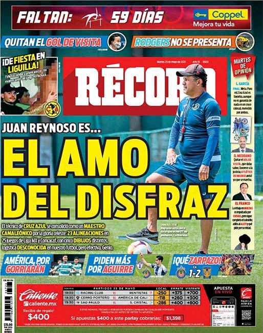 Record, el diario deportivo más importante de México puso en portada a Juan Reynoso con el titular: “El amo del disfraz” debido a la gran cantidad de esquemas utilizado hasta ahora.
