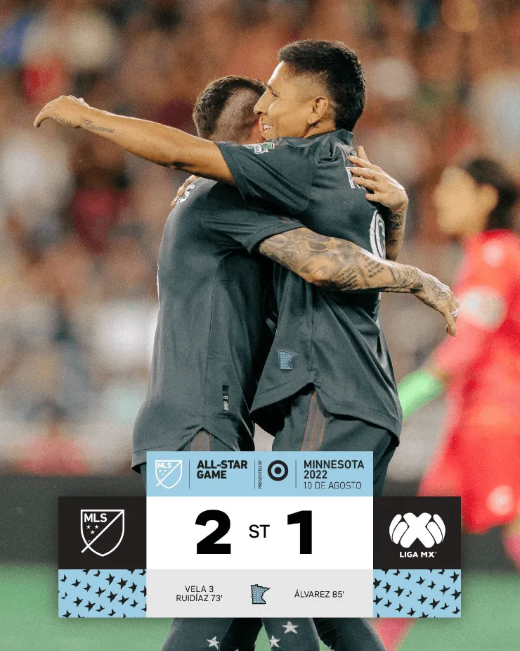 El mexicanoCarlos Velay el peruanoRaúl Ruidíazle dieroneste miércoles el triunfo por 2-1 al equipo All-Star de laMLS frente al All-Star de laLiga MX, en el ‘Juego de las Estrellas’ organizado en Saint Paul (Minnesota, Estados Unidos). El peruano ingresó en la segunda parte y no decepcionó al momento que le tocó definir desde los doce pasos para aumentar la cuenta del conjunto de la Major League Soccer.