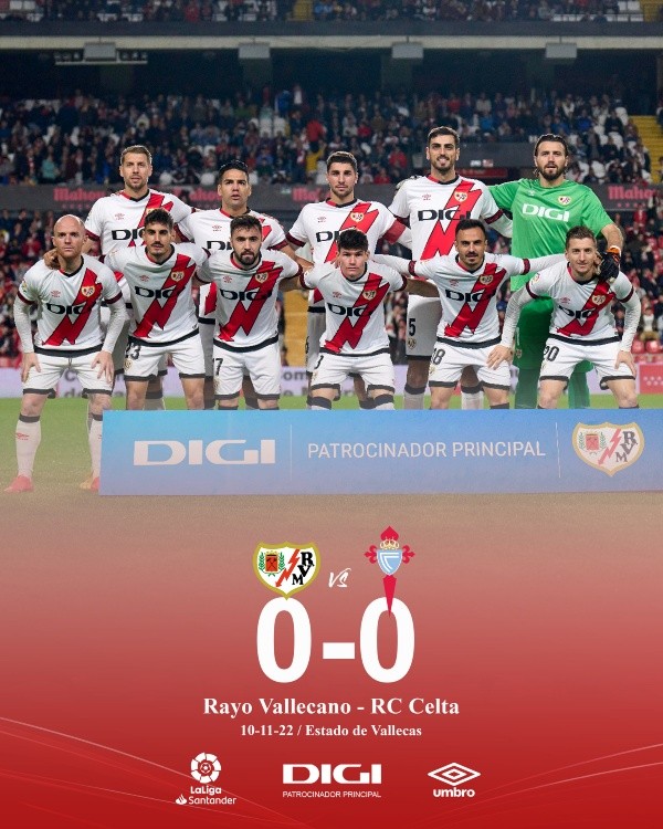 Rayo Vallecano de local estará recibiendo al Celta de Vigo este jueves 10 de noviembre a la (1:00 PM – HORA PERUANA). El partido se jugará en el ‘Campo de Fútbol de Vallecas’, correspondiente a la jornada 14 de la Liga Española.