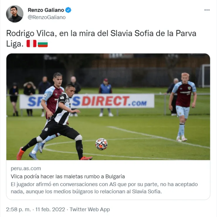 “Rodrigo Vilca, en la mira del Slavia Sofia de la Parva Liga”, fue lo que tuiteó el periodista Renzo Galiano tras compartir su nota sobre el interés del club búlgaro por el exjugador del Deportivo Municipal.