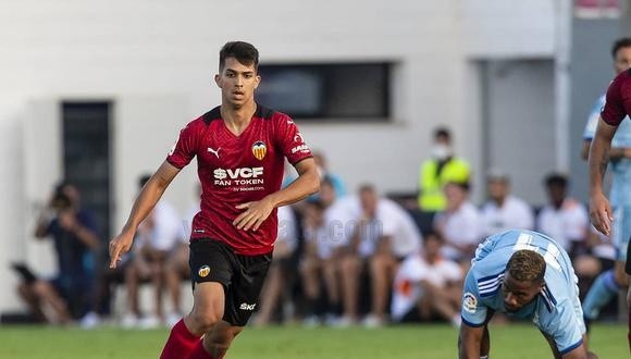 Y es que en los amistosos previos fue colocado como titular en el primer equipo. Sí, nada menos que el Valencia lo contemplaba para jugar la primera división durante el 2021 con solo 19 años. Este viernes, se confirmó esto último.