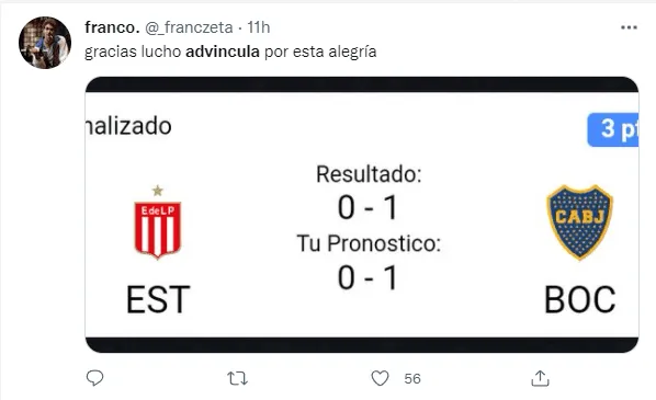 Después de un pésimo partido de Boca Juniors en la Bombonera y de una semana plagada de críticas, los dirigidos por Sebastián Battaglia le ganaron a Estudiantes de La Plata, que venía invicto, de visitante con un cabezazo perfecto de Advíncula: llegó por el segundo palo y anotó su primer tanto con la camiseta azul y oro.