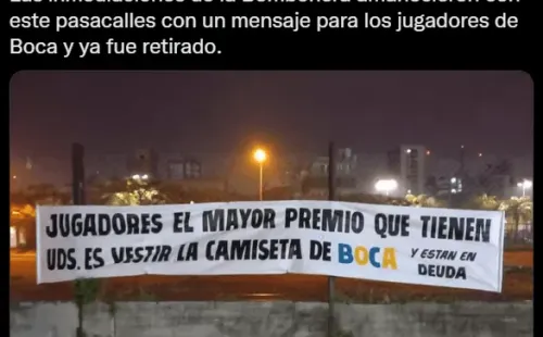 Donde se ve una pancarta dura, con un mensaje en contra de los futbolistas en general. La descripción de esta noticia en redes sociales, señala lo siguiente: “Las inmediaciones de la Bombonera amanecieron con este pasacalles con un mensaje para los jugadores de Boca y ya fue retirado”. Se viven horas complicadas en ‘Casa Amarilla’.