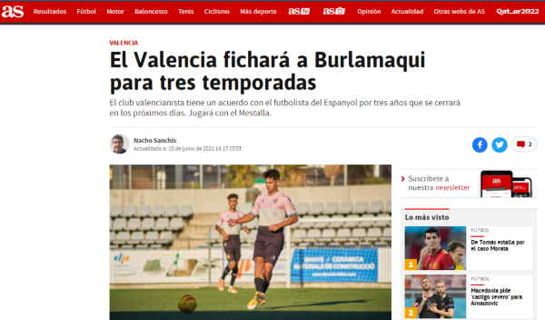 El diario AS lo define así: “La operación se cerrará de manera oficial una vez el jugador concluya su contrato el 30 de junio. El Valencia incorporará así a un centrocampista con buena visión de juego y que sabe organizar al equipo desde el centro del campo. Ha sido internacional en todas las categorías inferiores de Perú y cuenta con pasaporte español, por lo que no ocupa plaza de extracomunitario”.