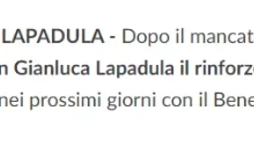 Así informa el reconocido portal de transacciones ‘Calciomercato’: “CAGLIARI, OBJETIVO DE LAPADULA – Tras la fallida llegada de Brunori, el Cagliari ha identificado en Gianluca Lapadula al refuerzo ideal para el ataque. El club sardo se reunirá con el Benevento en los próximos días para intentar llegar a un acuerdo”.