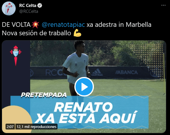 La descripción final del vídeo por parte de Celta de Vigo para el jugador de la Selección Peruana en YouTube es muy interesante: “Continua la preparación del equipo, nueva sesión de trabajo en el Marbella Football Center con las novedades de Renato Tapia y Okay, que se incorporan al grupo después de haber participado este verano en torneos internacionales con sus selecciones”.