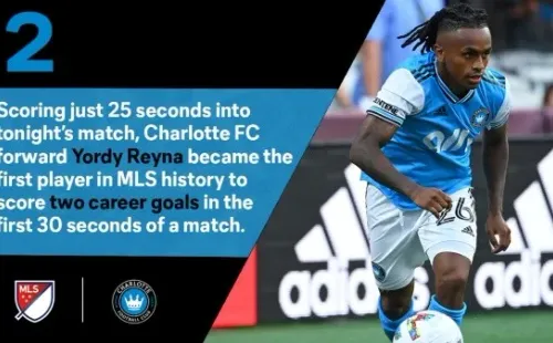 En el último partido, donde cayeron derrotados ante Chicago Fire (2-3), pasó algo. Donde nuestro representante es la principal noticia: “Después de anotar apenas 25 segundos en el partido de esta noche, el delantero de Charlotte FC. Yordy Reyna se convirtió en el primer jugador en la historia de la MLS en anotar en los primeros 30 segundos de un partido dos veces en su carrera”.