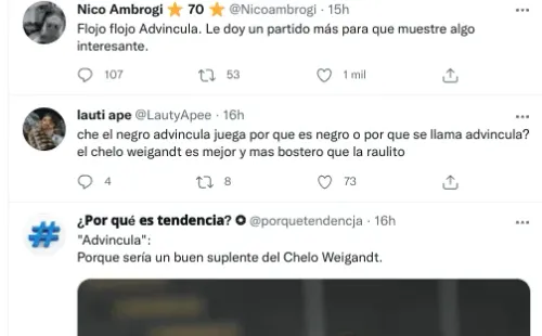 En el momento del encuentro se leyeron muchos comentarios distintos. Muchos de ellos pedía a MarceloWeigandt, lateral de las canteras que venía sumando algunos minutos. Acá les dejamos algunos de los comentarios ¡A seguir trabajando Lucho!