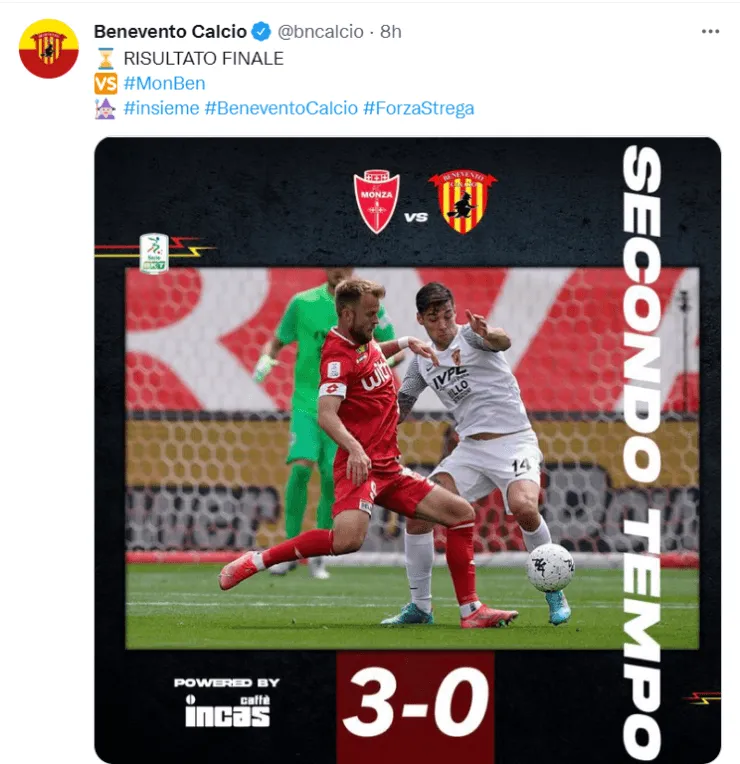 Sin la presencia del ítalo-peruano entre sus convocados por lesión, Benevento sucumbió en el Estadio Brianteo ante la Associazione Calcio Monza, que consiguió un valioso triunfo gracias a los tantos de Dany Mota, en dos oportunidades, y Christian Gytkjaer desde el punto penal. Cabe resaltar que el ‘Bambino’, sumó siete encuentros sin jugar en el torneo de ascenso del fútbol italiano, y tuvo que ver el compromiso desde la tribuna.