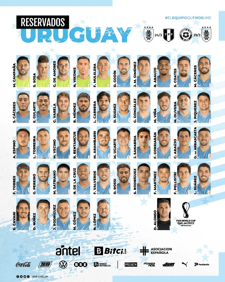 La lista de convocados de Uruguay