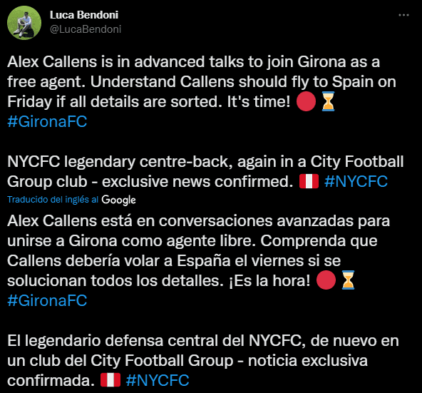Acá cae el elogio para el jugador formado en el puerto chalaco, y además, se da la revelación como tal: “El legendario defensa central del NYCFC, de nuevo en un club del City Football Group – noticia exclusiva confirmada”. El más contento de todos, seguramente, será Juan Máximo Reynoso, como entrenador del equipo de todos.