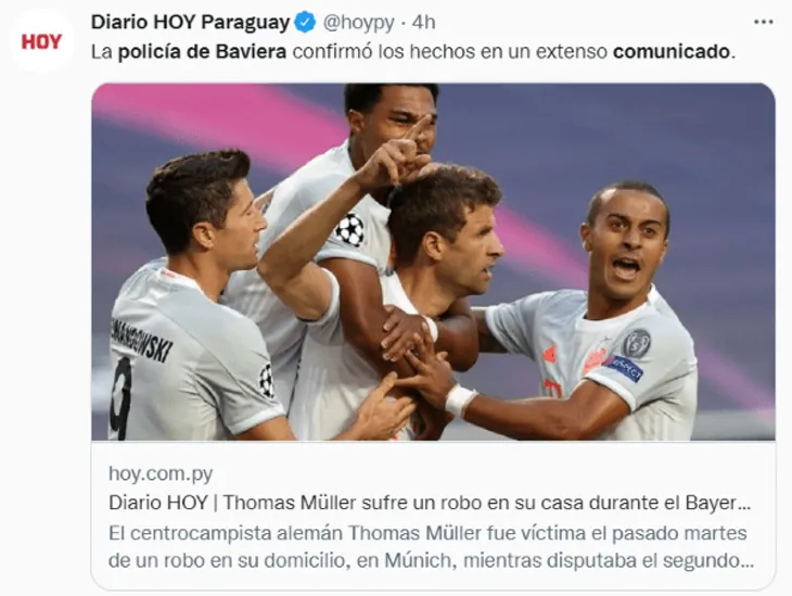 Según la información publicada por el diario alemán “Bild”, la casa de Müller fue allanada alrededor de las 10 de la noche, cuando el partido comenzaba la segunda mitad. Además, la policía de Baviera confirmó los hechos en un extenso comunicado que detalló el botín que obtuvieron los asaltantes, superior en valor a las seis cifras, compuesto por dinero en efectivo, joyas, y otros objetos de valor.