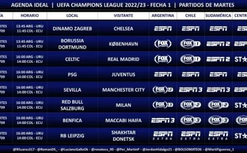 Champions League // Fecha 1 (MARTES 6 DE SEPTIEMBRE):