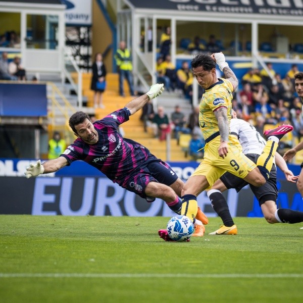 Abriéndose hacia la izquierda, pero todavía con ángulo, el delantero peruano Gianluca Lapadula amagó disparar y, tras dejar en el piso a Gianluigi Buffón, definió a portería vacía. Si bien el tiro tenía dificultad pues no había tanto margen de remate, la pelota ingresó en la portería del Parma para el 1-0 de Cagliari por la Serie B.