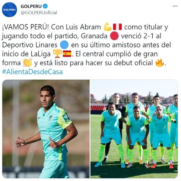 Esta vez el defensor peruano volvió a disputar encuentro con su equipo, el último amistoso antes de comenzar la primera fecha por La Liga. Luis Abram jugó los 90 minutos donde el Granada CFganó por 2-1 al Deportivo Linares. De esta manera el ex Sporting Cristal se viene afianzando en la saga ‘Rojiblanca’ y podría formar parte del once inicial en el debut.