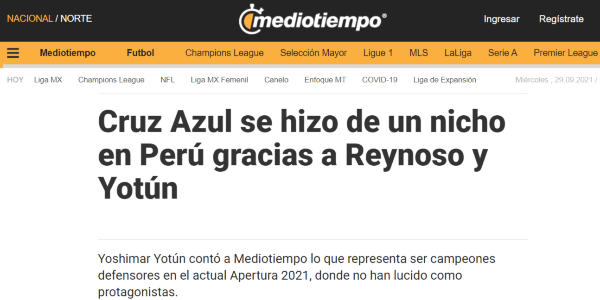 “En mi país se habla mucho de Cruz Azul por mí y el entrenador. Siempre lo comentan y siguen, ellos saben que Cruz Azul es un equipo grande y en Perú se quiere tener siempre a un jugador en una liga buena como la mexicana y qué mejor que en un club grande. Es la mejor decisión que he tomado, me siento muy bien aquí”. Precisó en un principio ‘Yoshi’.