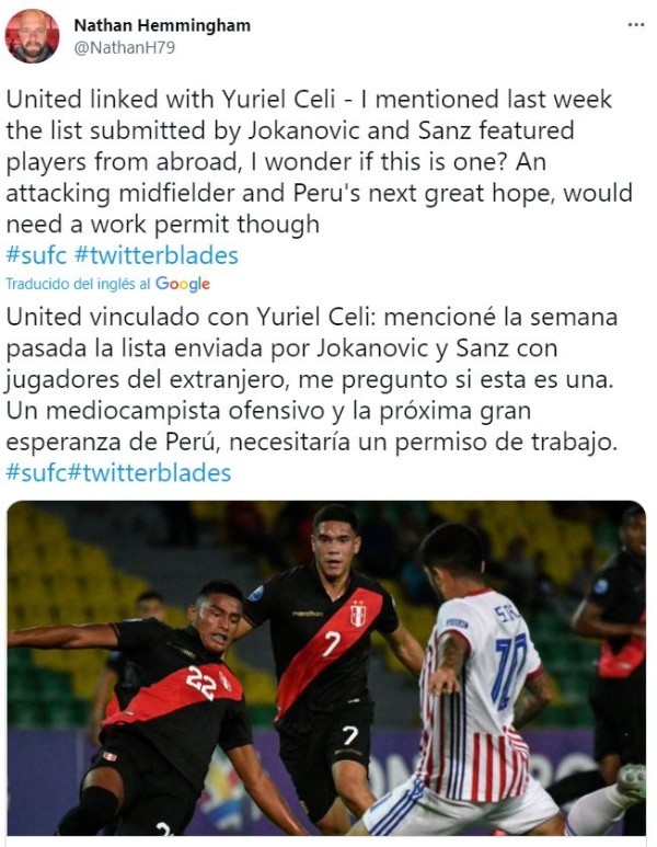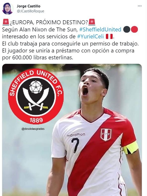 Según informó el periodista Alan Nixon, del diario ‘The Sun’ en Inglaterra, que el Sheffield United está trabajando para conseguirle un permiso de trabajo en ese país al jugador de 19 años. Sería un préstamo del equipo peruano al inglés, con opción de compra, por el valor de 800 mil dólares. El jugador tiene contrato con AD Cantolao hasta junio del 2022.