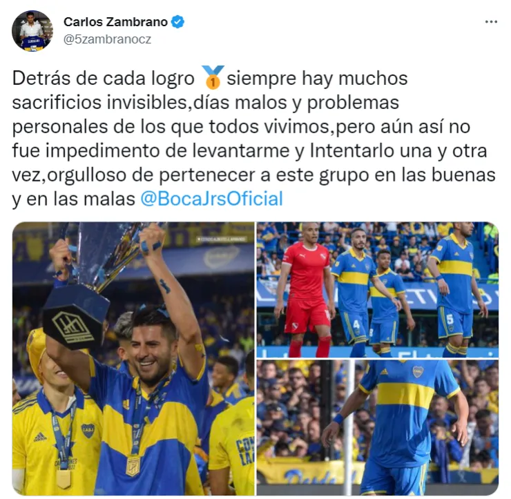 Tras el épico título logrado este último domingo, Boca Juniors ya quedó enfocado en sumar un nuevo trofeo en sus vitrinas y el entrenador Hugo Ibarra dio a conocer la convocatoria para el duelo ante Patronato, en la cual figura Luis Advíncula, perono Carlos Zambrano, quien dejó un emotivo mensaje a sus seguidores en las redes sociales.