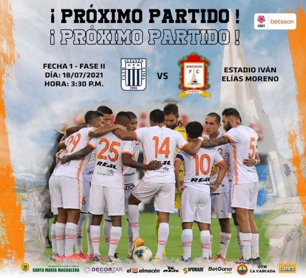 Ayacucho, por su parte, sabe que al frente tendrá un duro rival y tratará de proponer condiciones para superarlo en el encuento. Los visitantes cayeron 2 a 0 ante Sporting Cristal en duelo correspondiente a la Copa Bicentenario.