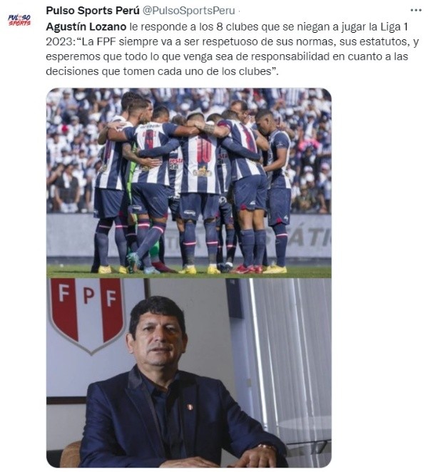 Continuando con sus declaraciones, Agustín Lozano dejó en claro que las normas que profesa la FPF son las adecuadas, pero también desea que todos los clubes empiecen el torneo 2023 de la Liga 1.