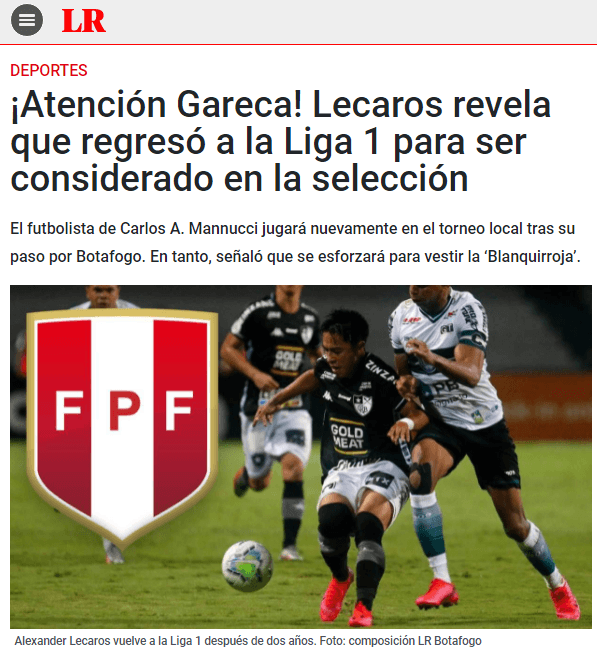 “El profe (Ricardo Gareca) está haciendo una buena campaña. Después de mucho tiempo la selección volvió a tener un buen fútbol y lo demostró partido a partido. Espero que estos últimos partidos sean de mucha felicidad para lograr el objetivo”. Todo dependerá de Lecaros, de cómo trabaje su día a día, y que su rendimiento sea sostenido. Tiene las aptitudes.