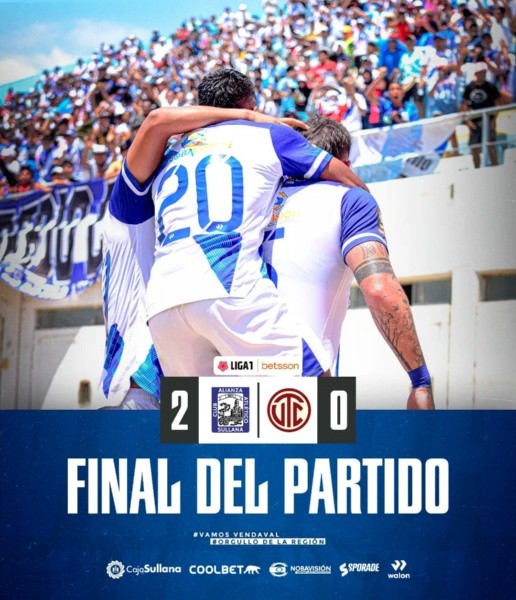 Los goles para el dueño de casa, fueron marcados por Santiago Arias y Miguel Cornejo. Así es como Alianza Atlético de Sullana se llevó este valioso triunfo ante un cuadro venido a menos. Celebra el Comando Churre, por este arranque de temporada, el cual ilusiona a todos.