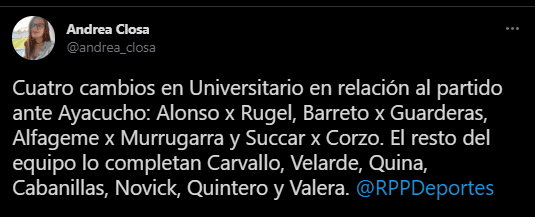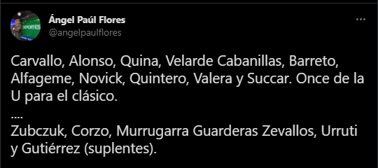 Por parte de Universitario, existieron una pequeñas modificaciones: “Carvallo, Alonso, Quina, Velarde, Cabanillas, Barreto, Alfageme, Novick, Quintero, Valera y Succar”. Sorprendiendo ‘El Inidio con un equipo bastante ofensivo.