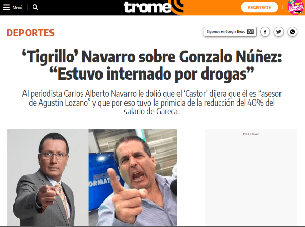 ‘El Diario Trome’ tomó apunte, y presentó el artículo donde contextualiza lo que sucedió recientemente en ‘PBO Campeonísimo’: “Gonzalo Núñez recordó que la ‘primicia’ la dio Carlos Alberto ‘Tigrillo’ Navarro, estimando que la filtración provino de la propia FPF para tantear la opinión pública y favorecer la “negociación” que se hizo con Gareca en Argentina”.