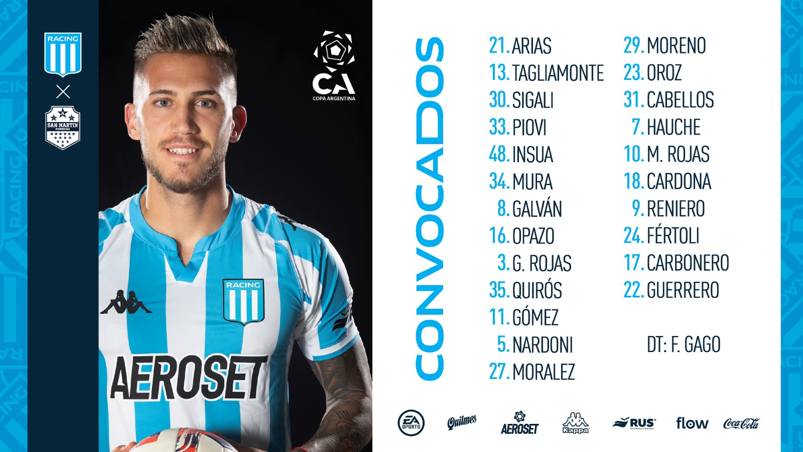 Resulta que el estratega de Racing Club confía en el Depredador y seguirá dándole minutos con la escuadra argentina, ya que lo ha convocado para el encuentro que sostendrán anteSan Martín Formosa por la primera ronda del torneo.